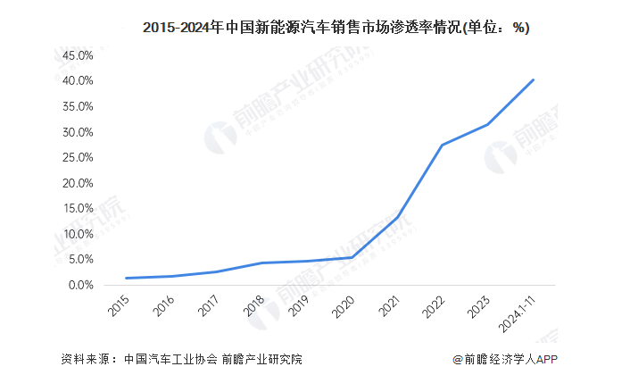 回望来路,中国新能源汽车产业的发展堪称奇迹。2014年开始出现私人购买新能源汽车,由此也开启我国新能源汽车元年。2015年,新能源汽车产销占比首次突破1%,中国成为全球最大新能源汽车市场。2023年,市场渗透率达到31.6%,2024年1-11月进一步提升至40.3%,至2025年,这一数字已逼近50%。